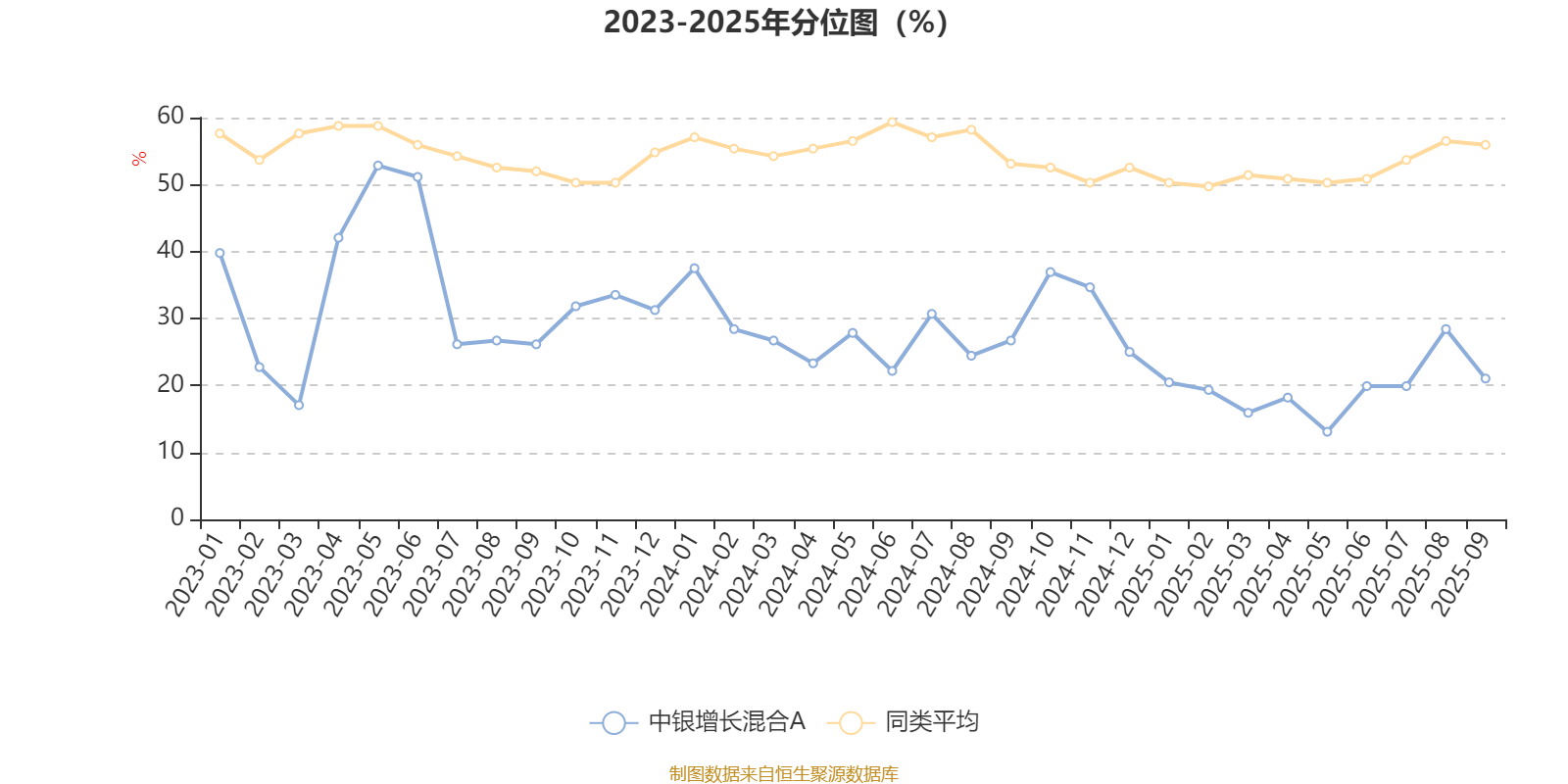 通过所选区间该基金净值增长率分位图,可以观察该基金与同类基金业绩比较情况。图为坐标原点到区间内某时点的净值增长率在同类基金中的分位数。
