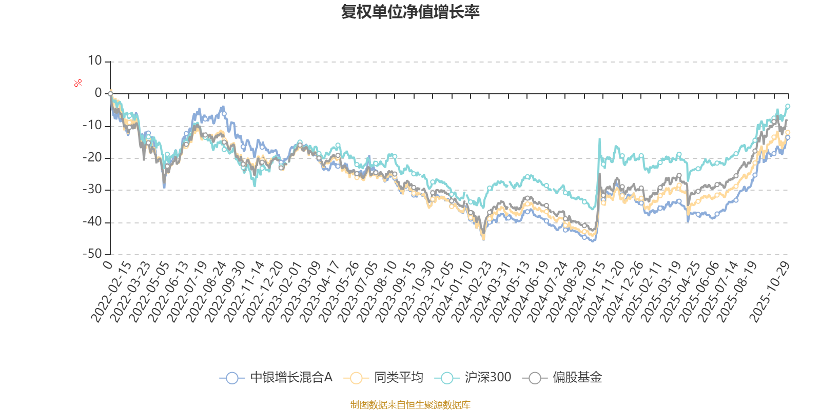 截至10月29日,中银增长混合A近三个月复权单位净值增长率为21.48%,位于同类可比基金54/185;近半年复权单位净值增长率为40.07%,位于同类可比基金51/185;近一年复权单位净值增长率为26.30%,位于同类可比基金104/181;近三年复权单位净值增长率为7.71%,位于同类可比基金139/175。