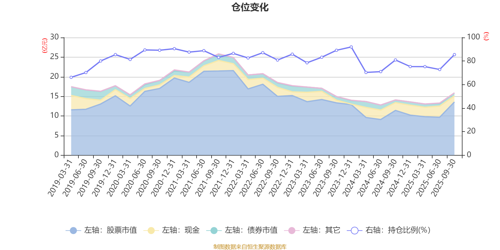 据定期报告数据统计,近三年平均股票仓位为79.97%,同类平均为87.62%。2023年末基金达到91.96%的最高仓位,2019年一季度末最低,为66.17%。