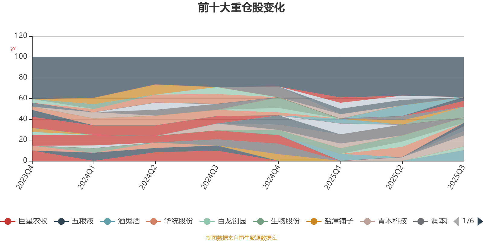 该基金持股集中度较高。截至2025年三季度末,基金十大重仓股分别是丸美生物、青木科技、酒鬼酒、若羽臣、科锐国际、上海家化、润本股份、科拓生物、百龙创园、海信视像。