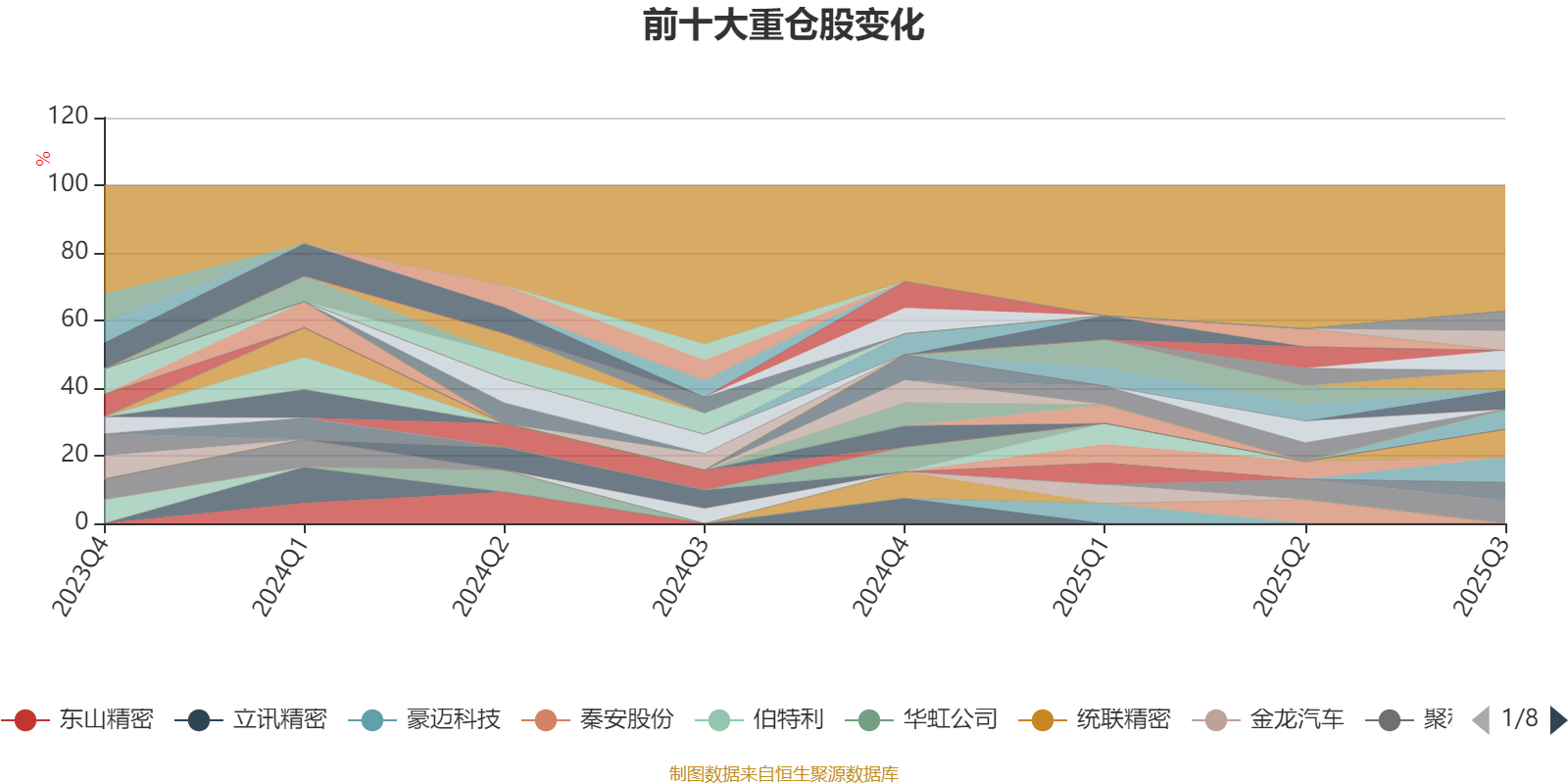 该基金持股集中度较高。截至2025年三季度末,基金十大重仓股分别是中兴通讯、宁德时代、聚和材料、科华数据、新易盛、中国天楹、中芯国际、盛弘股份、金风科技、华工科技。