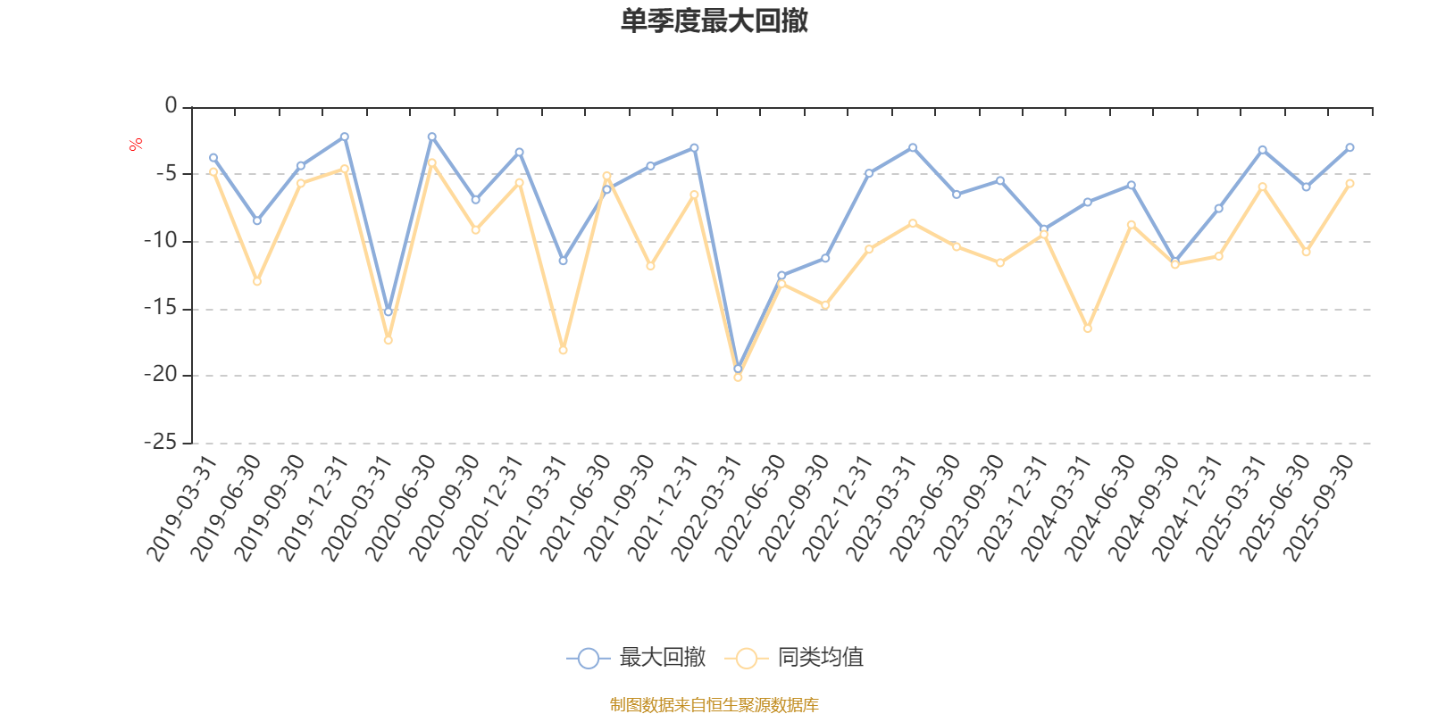 截至10月28日,基金近三年最大回撤为18.5%,同类可比基金排名13/513。单季度最大回撤出现在2022年一季度,为19.46%。