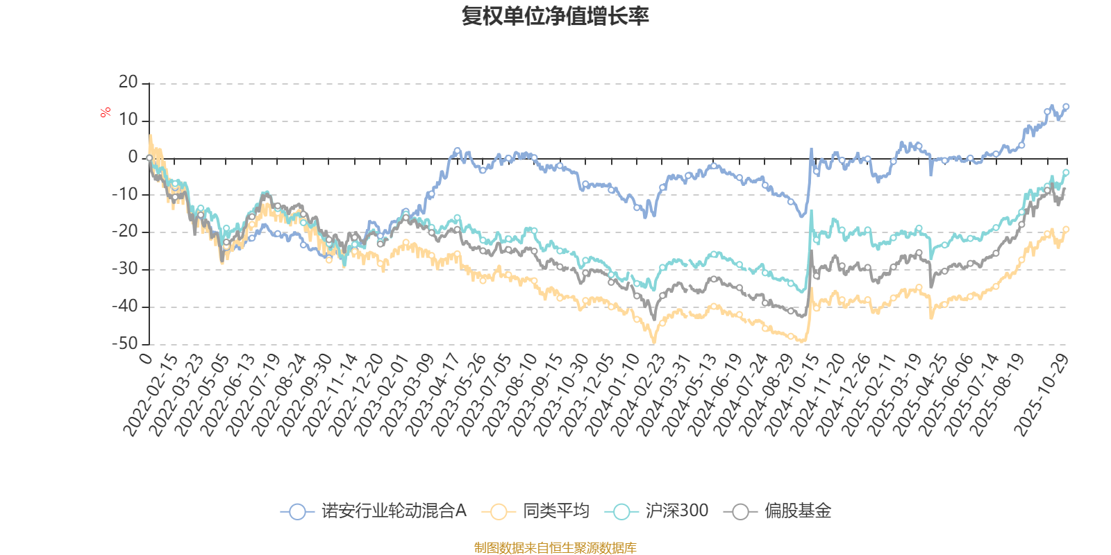 截至10月29日,诺安行业轮动混合A近三个月复权单位净值增长率为10.43%,位于同类可比基金420/621;近半年复权单位净值增长率为14.88%,位于同类可比基金529/621;近一年复权单位净值增长率为15.79%,位于同类可比基金492/611;近三年复权单位净值增长率为57.09%,位于同类可比基金57/518。