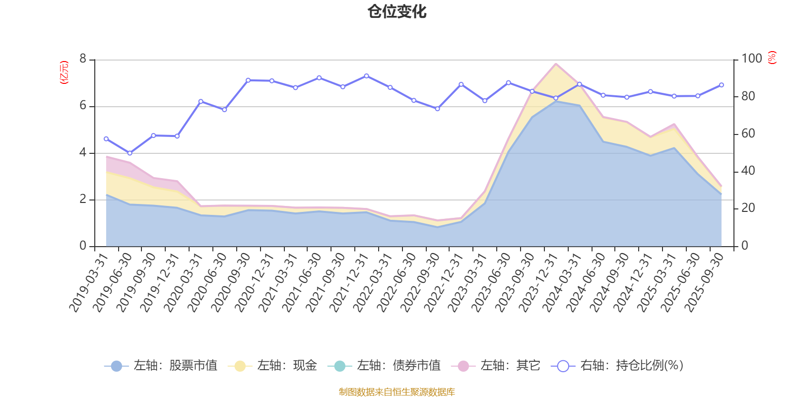 据定期报告数据统计,近三年平均股票仓位为82.72%,同类平均为85.66%。2021年末基金达到91.24%的最高仓位,2019年上半年末最低,为49.94%。