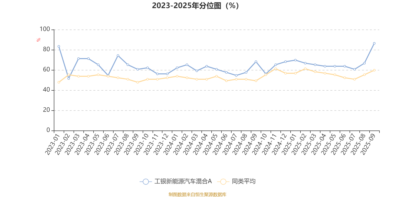 通过所选区间该基金净值增长率分位图,可以观察该基金与同类基金业绩比较情况。图为坐标原点到区间内某时点的净值增长率在同类基金中的分位数。