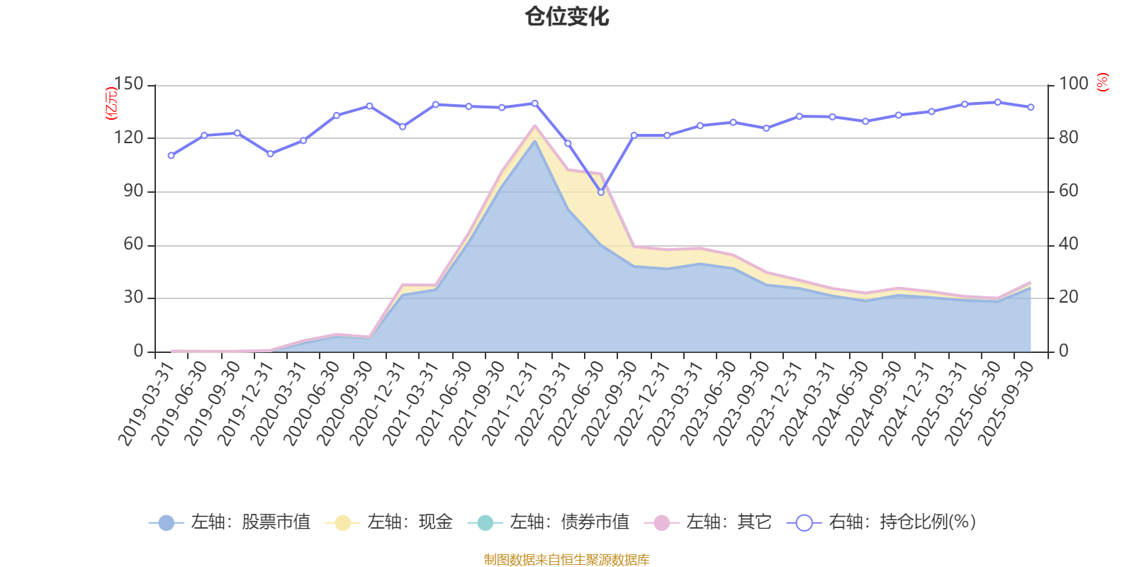据定期报告数据统计,近三年平均股票仓位为87.96%,同类平均为87.09%。2025年上半年末基金达到93.58%的最高仓位,2022年上半年末最低,为59.8%。