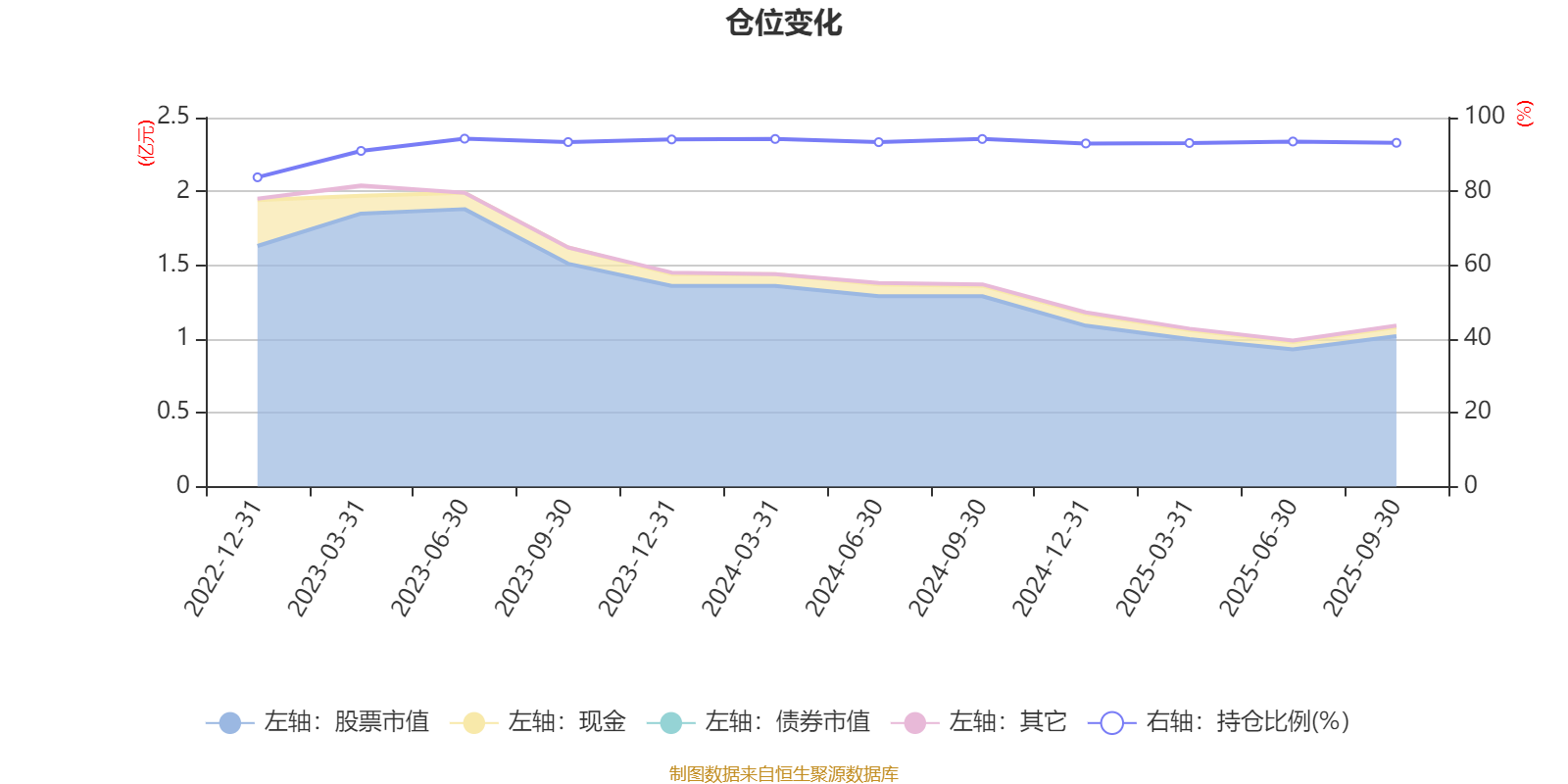 据定期报告数据统计,近三年平均股票仓位为92.59%,同类平均为83.73%。2023年上半年末基金达到94.29%的最高仓位,2022年末最低,为83.82%。