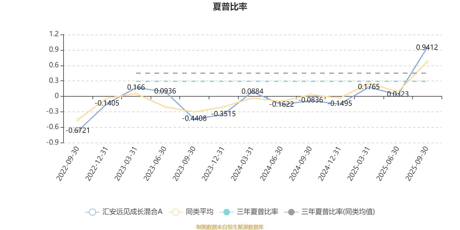 截至9月30日,基金近三年夏普比率为0.2912,位于同类可比基金256/360。