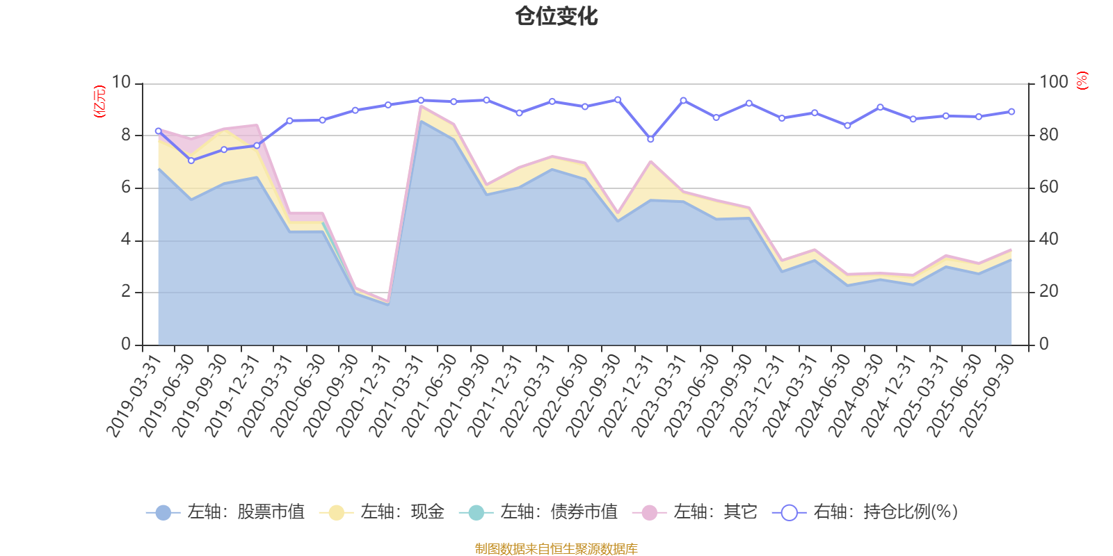 据定期报告数据统计,近三年平均股票仓位为87.7%,同类平均为72.35%。2022年三季度末基金达到93.79%的最高仓位,2019年上半年末最低,为70.49%。