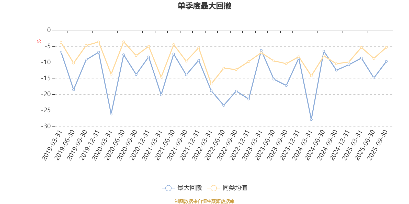 截至10月28日,基金近三年最大回撤为43%,同类可比基金排名1008/1274。单季度最大回撤出现在2024年一季度,为27.8%。