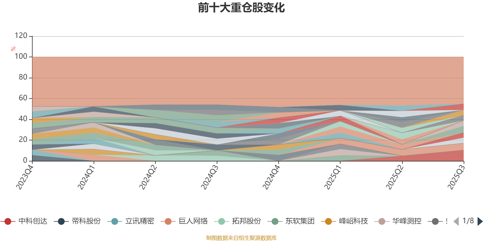 该基金持股集中度较高。截至2025年三季度末,基金十大重仓股分别是安集科技、完美世界、华勤技术、伟测科技、瑞芯微、中科创达、珠海冠宇、臻镭科技、TCL科技、锐捷网络。