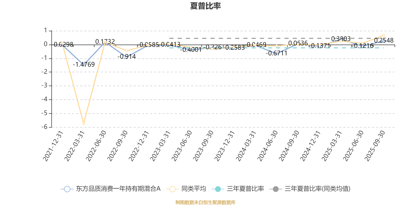 截至9月30日,基金近三年夏普比率为-0.2399,位于同类可比基金353/360。