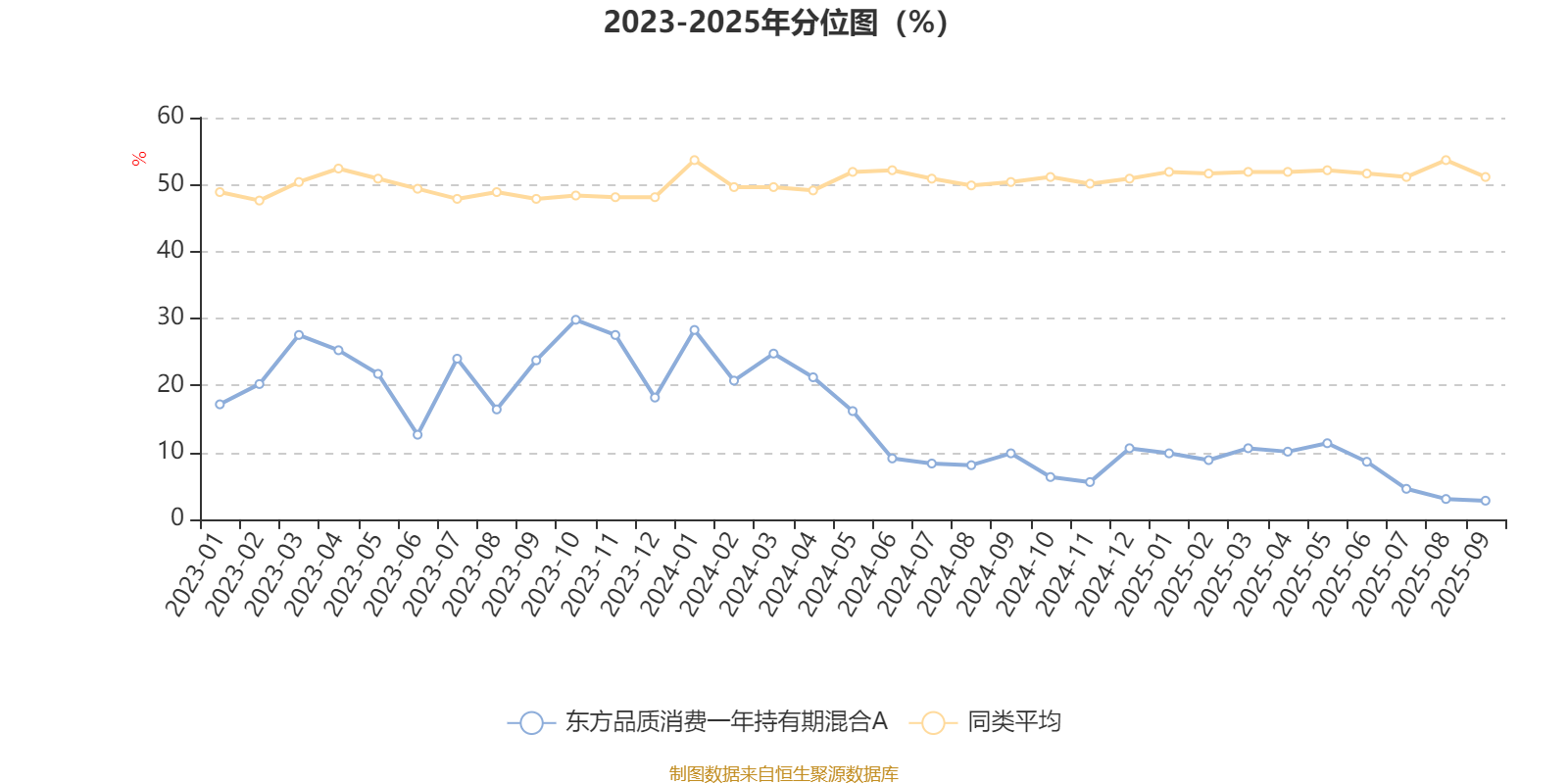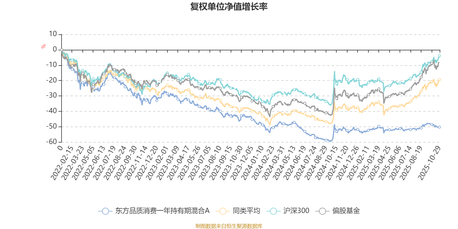 截至10月29日,东方品质消费一年持有期混合A近三个月复权单位净值增长率为2.26%,位于同类可比基金626/689;近半年复权单位净值增长率为4.44%,位于同类可比基金673/688;近一年复权单位净值增长率为2.75%,位于同类可比基金633/657;近三年复权单位净值增长率为-23.82%,位于同类可比基金351/364。