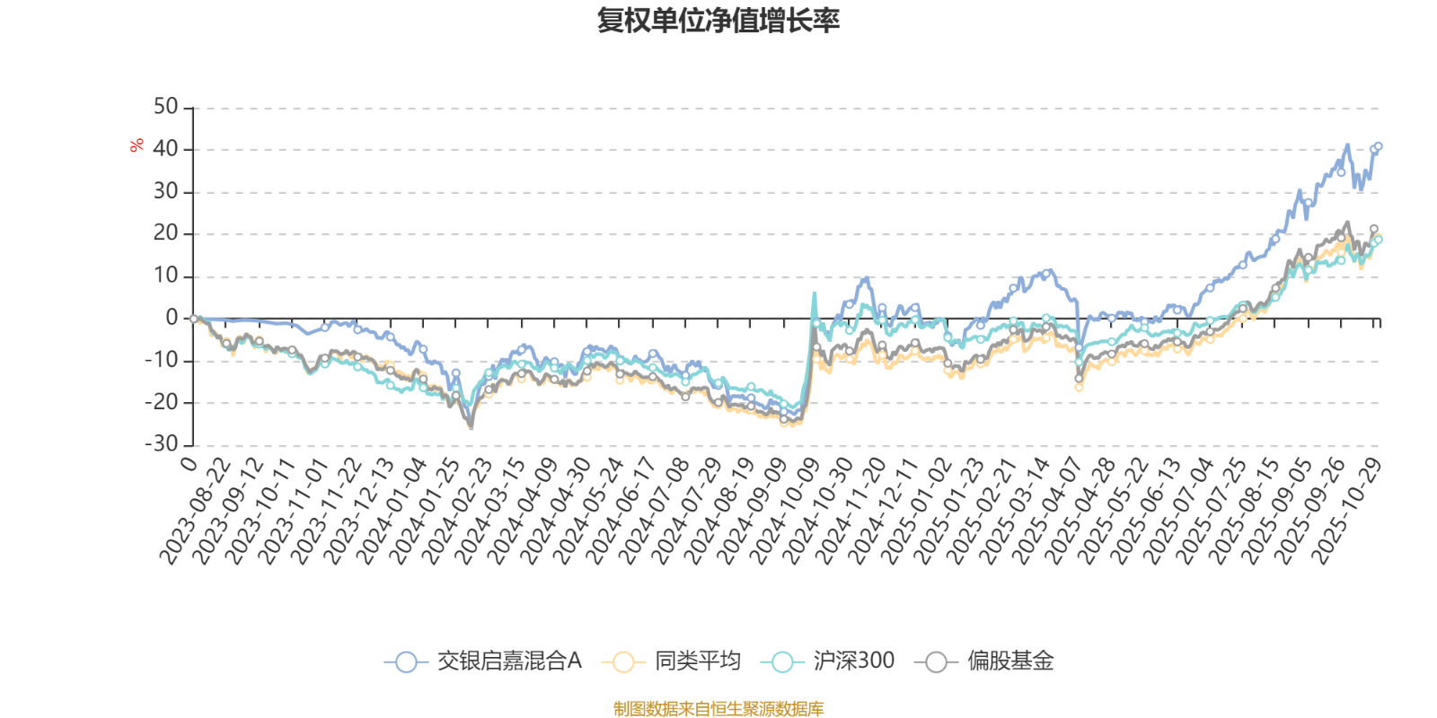 截至10月29日,交银启嘉混合A近三个月复权单位净值增长率为22.00%,位于同类可比基金169/621;近半年复权单位净值增长率为40.74%,位于同类可比基金162/621;近一年复权单位净值增长率为36.78%,位于同类可比基金234/611。