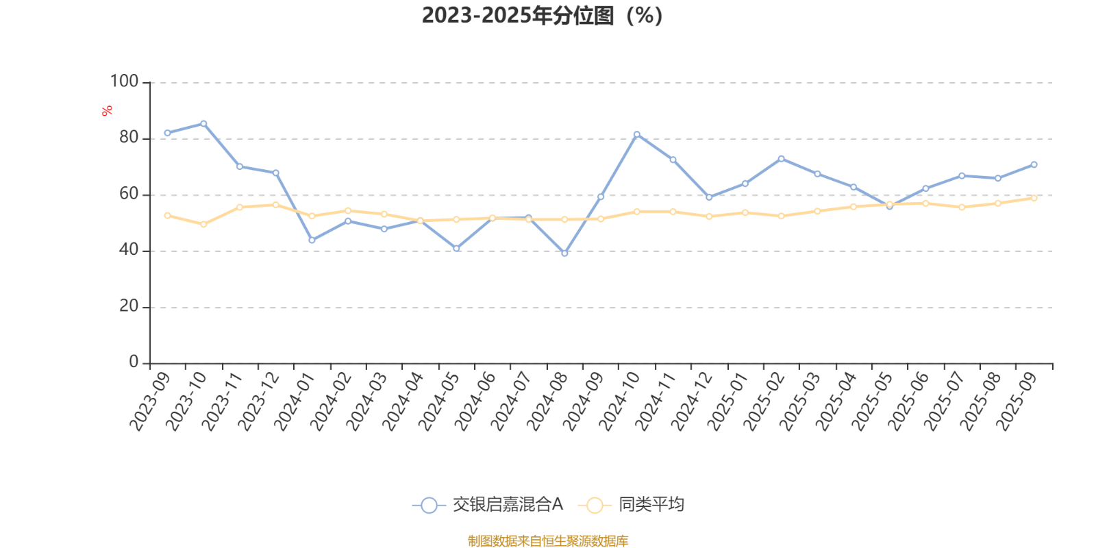 通过所选区间该基金净值增长率分位图,可以观察该基金与同类基金业绩比较情况。图为坐标原点到区间内某时点的净值增长率在同类基金中的分位数。