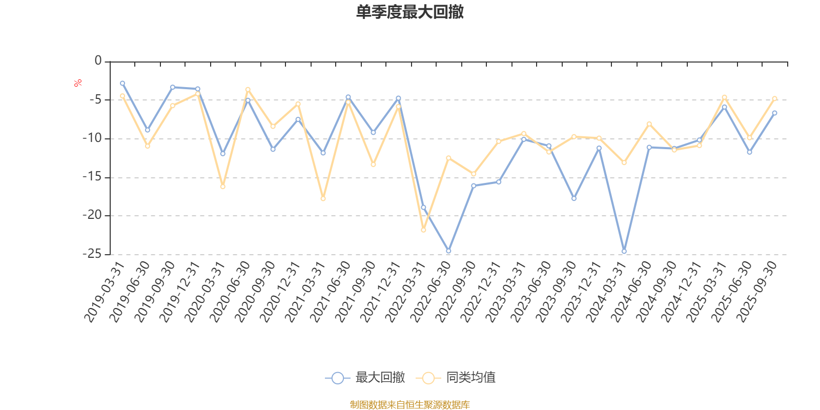 通过所选区间该基金净值增长率分位图,可以观察该基金与同类基金业绩比较情况。图为坐标原点到区间内某时点的净值增长率在同类基金中的分位数。