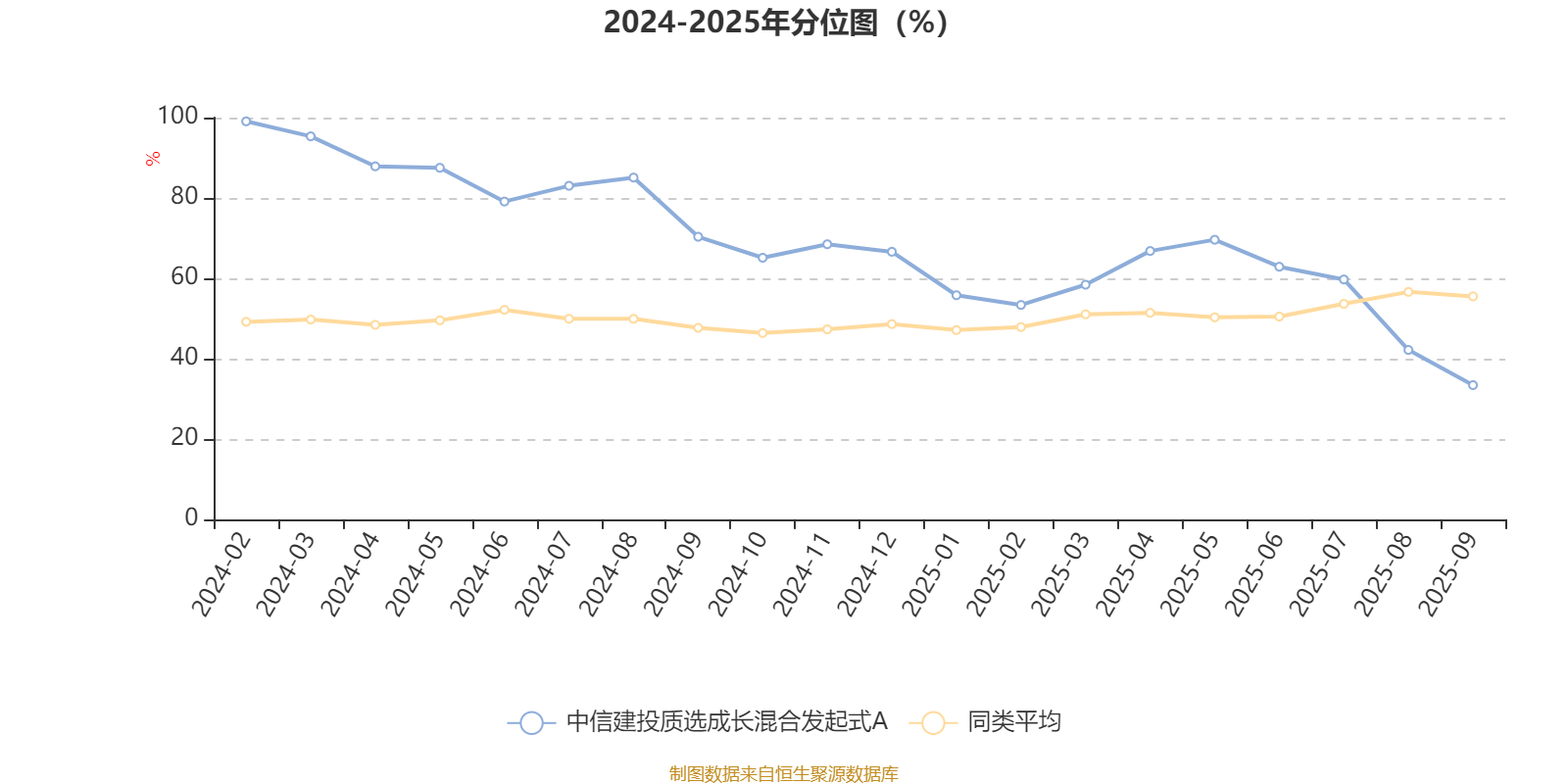 通过所选区间该基金净值增长率分位图,可以观察该基金与同类基金业绩比较情况。图为坐标原点到区间内某时点的净值增长率在同类基金中的分位数。