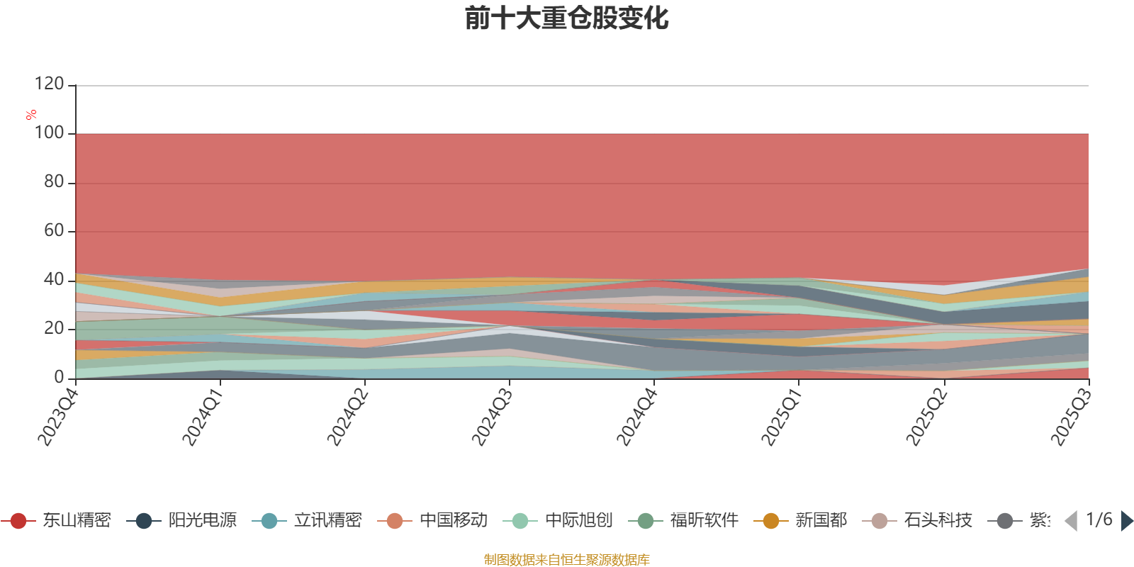 截至2025年三季度末,基金十大重仓股分别是宁德时代、胜宏科技、新易盛、东山精密、亿纬锂能、恺英网络、纽威股份、紫金矿业、中际旭创、牧原股份。