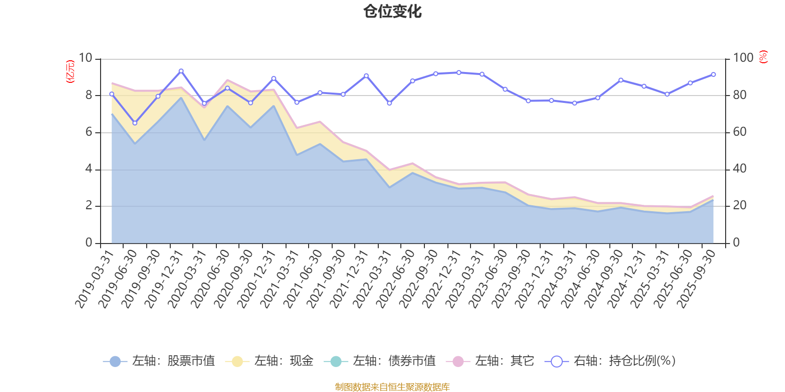 据定期报告数据统计,近三年平均股票仓位为84.17%,同类平均为72.35%。2019年末基金达到93.4%的最高仓位,2019年上半年末最低,为65.18%。
