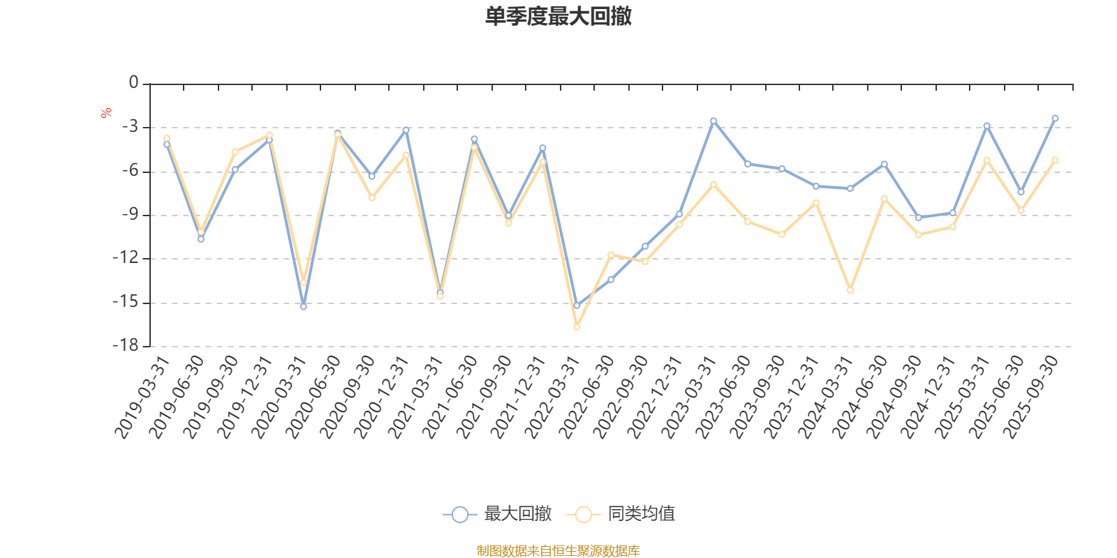 截至10月29日,基金近三年最大回撤为15.86%,同类可比基金排名211/1274。单季度最大回撤出现在2020年一季度,为15.28%。