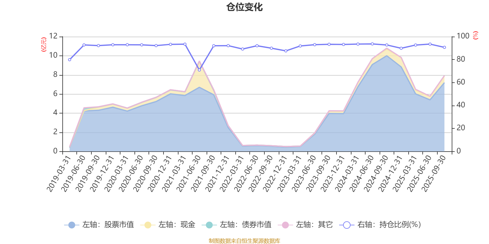 据定期报告数据统计,近三年平均股票仓位为92.11%,同类平均为72.35%。2024年上半年末基金达到93.64%的最高仓位,2021年上半年末最低,为70.92%。