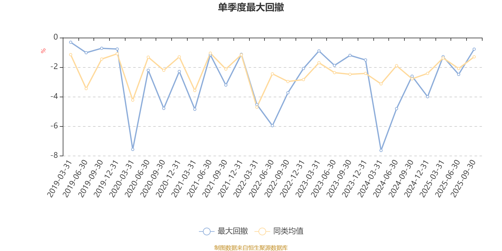 截至10月29日,基金近三年最大回撤为7.64%,同类可比基金排名337/534。单季度最大回撤出现在2024年一季度,为7.64%。
