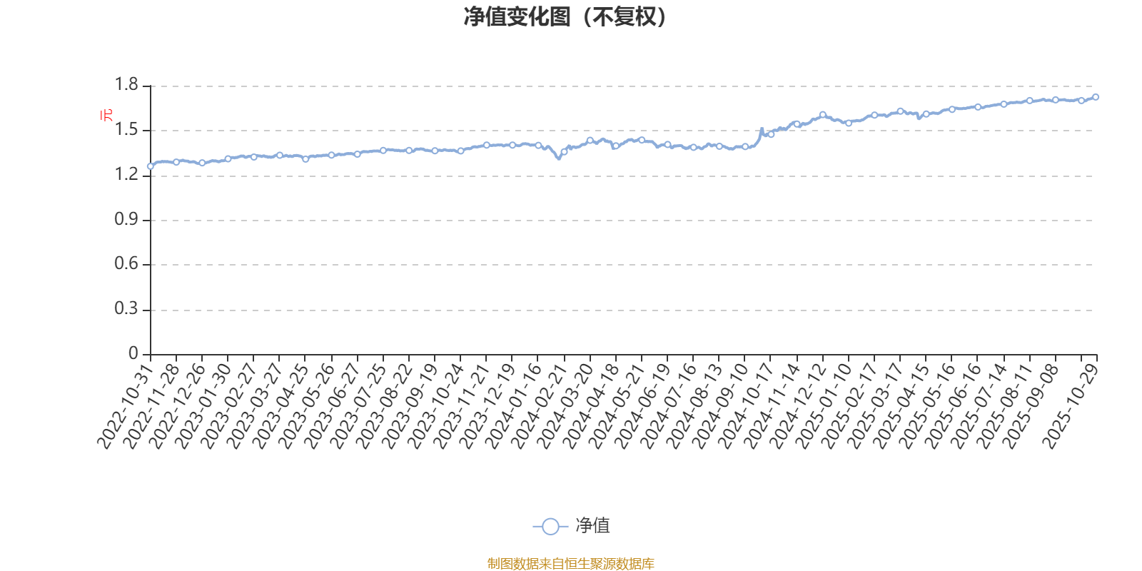 该基金属于偏债混合型基金。截至10月29日,单位净值为1.724元。基金经理是毛颖和张城源。
