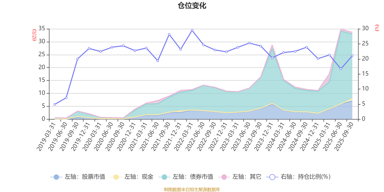 据定期报告数据统计,近三年平均股票仓位为21.99%,同类平均为19.14%。2022年一季度末基金达到29.48%的最高仓位,2019年一季度末最低,为4.9%。