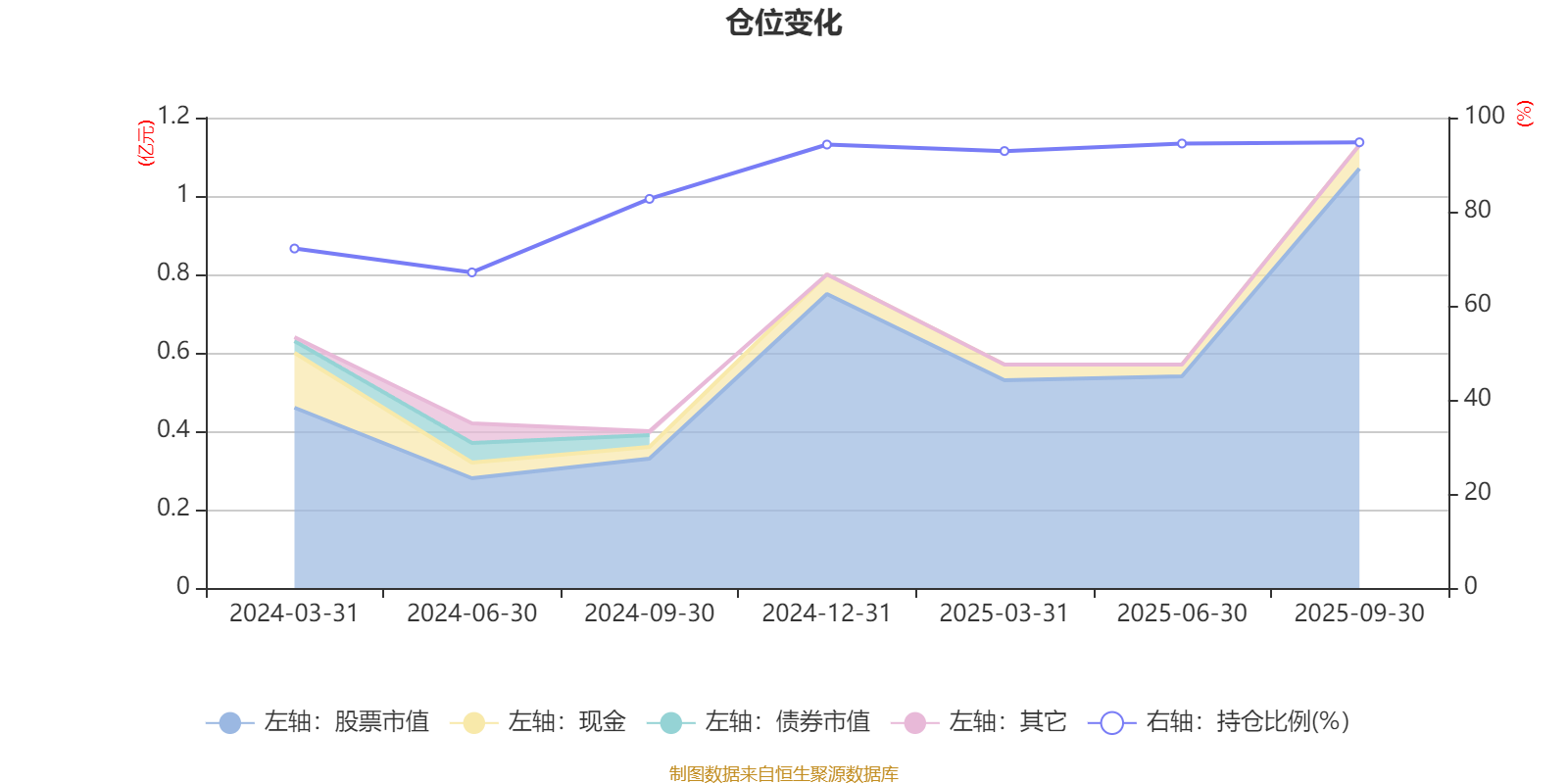 据定期报告数据统计,成立以来平均股票仓位为85.48%,同类平均为83.73%。2025年三季度末基金达到94.75%的最高仓位,2024年上半年末最低,为67.09%。