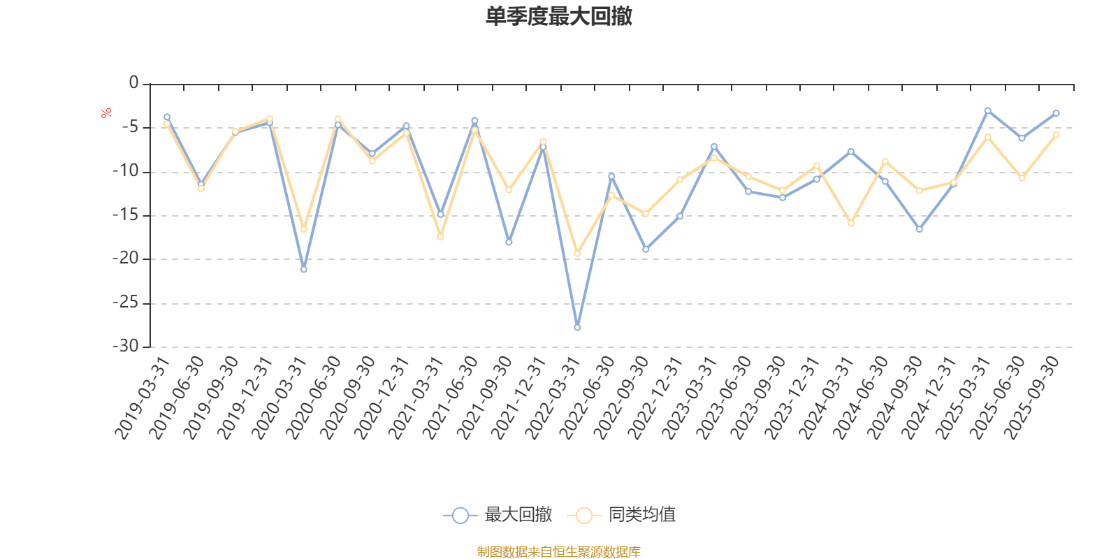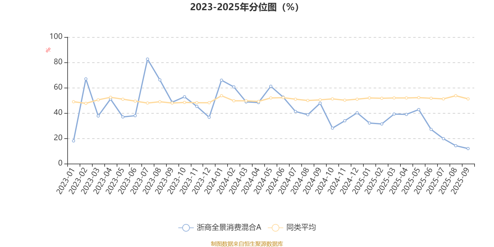 通过所选区间该基金净值增长率分位图,可以观察该基金与同类基金业绩比较情况。图为坐标原点到区间内某时点的净值增长率在同类基金中的分位数。