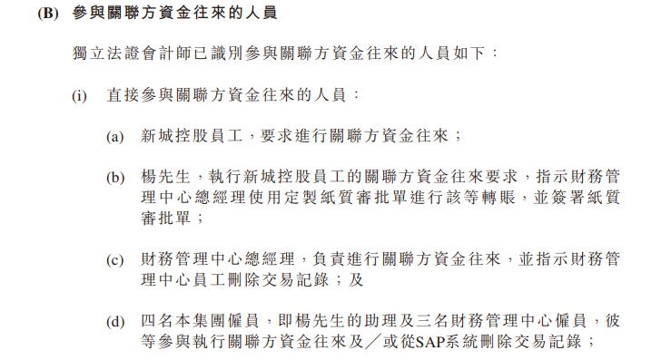 报告指出,2023年和2024年,在新城控股员工的主动请求下,新城悦服务给新城控股的附属公司上海悦崧分别拆借了18亿元、51.7亿元(合计69.7亿元)。这些资金由新城控股的一名管理人员和新城悦服务时任执行董事杨博策划,并在新城悦服务的多名员工协助下进行。