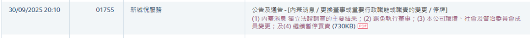 对于上述调查结果,新城悦服务方面表示,董事会已自9月30日起罢免杨博的执行董事及首席运营官职务。