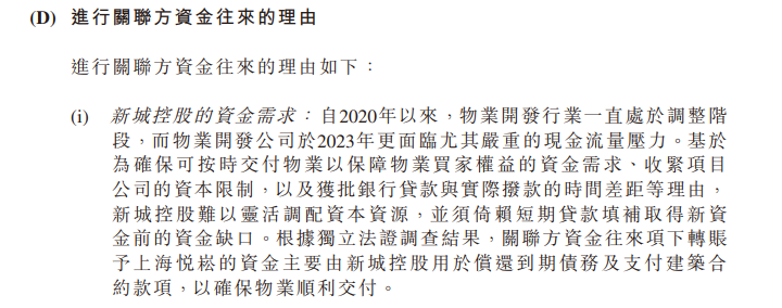 公司表示,自2020年以来,物业开发行业一直处于调整阶段,新城控股在2023年面临尤其严重的现金流量压力,需要短期贷款来填补资金缺口。资金主要用于“保交付”、支付工程款以及弥补银行贷款获批与实际拨款的时间差。