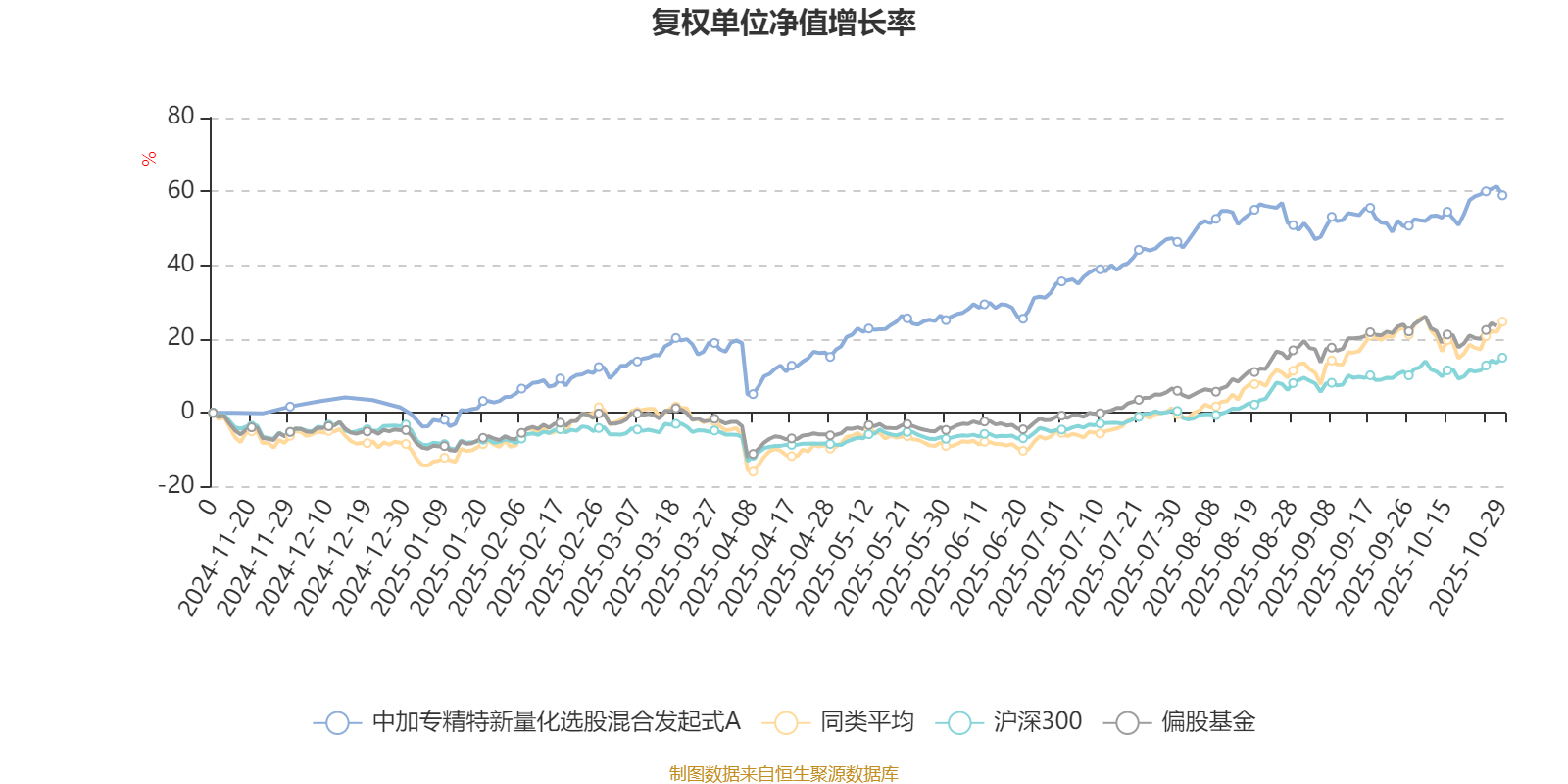 截至10月29日,中加专精特新量化选股混合发起式A近三个月复权单位净值增长率为7.89%,位于同类可比基金85/100;近半年复权单位净值增长率为35.76%,位于同类可比基金49/99。
