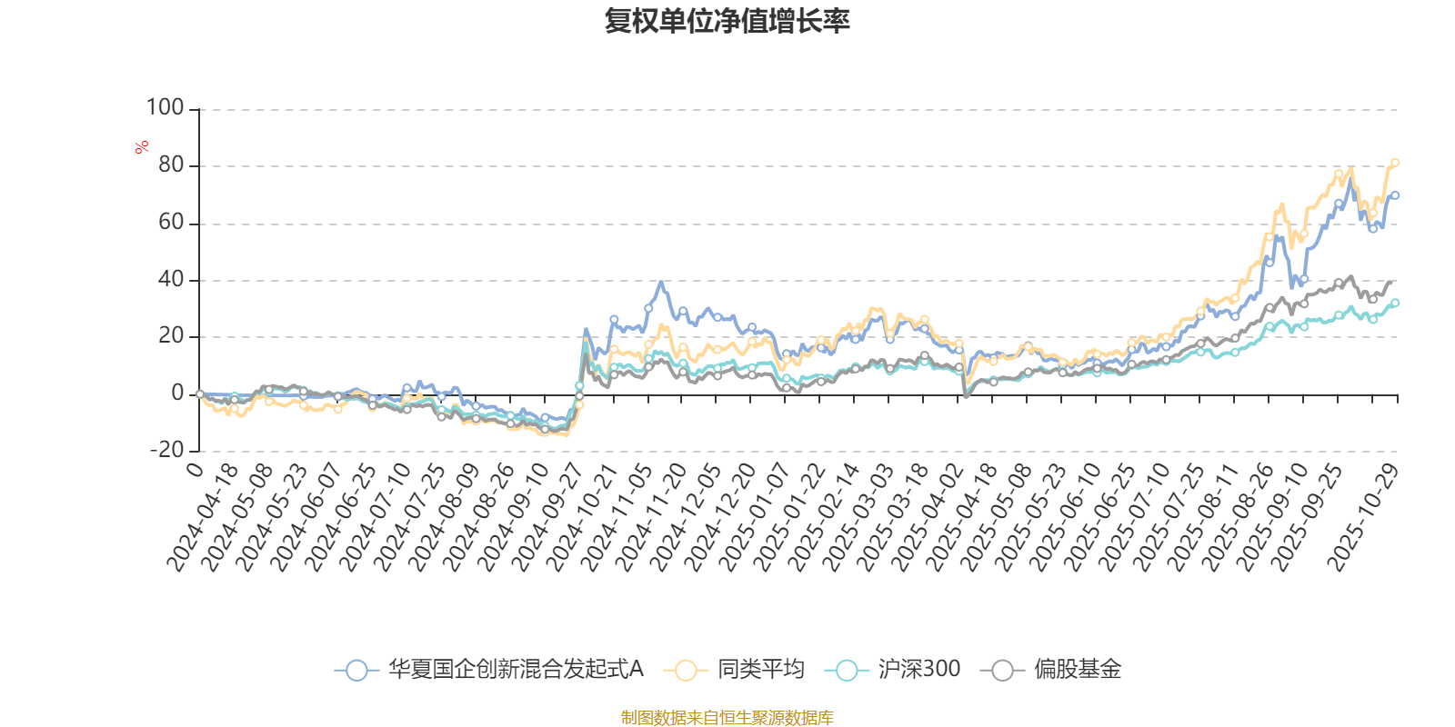 截至10月29日,华夏国企创新混合发起式A近三个月复权单位净值增长率为28.91%,位于同类可比基金148/229;近半年复权单位净值增长率为49.57%,位于同类可比基金120/229;近一年复权单位净值增长率为38.28%,位于同类可比基金174/213。