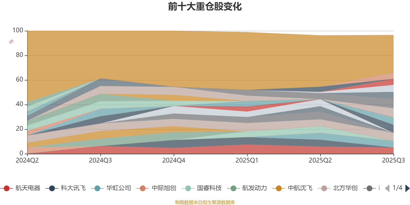 截至2025年三季度末,基金重仓股分别是中芯国际、海光信息、寒武纪、北方华创、华海清科、中科曙光、华虹半导体、华虹公司、航天电器、国博电子、拓荆科技。