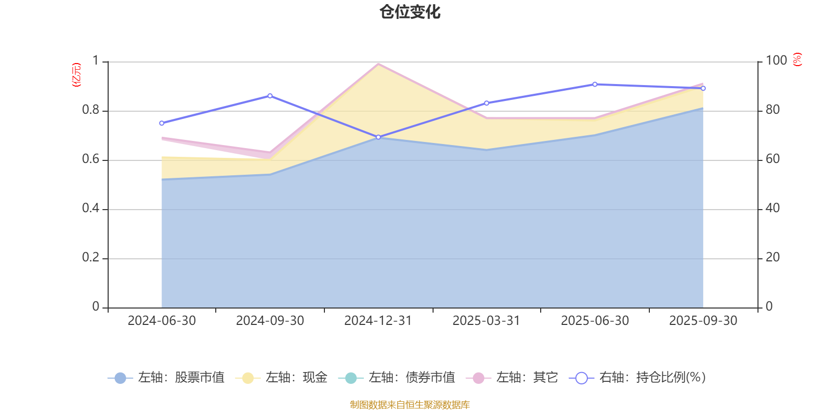 据定期报告数据统计,成立以来平均股票仓位为82.19%,同类平均为86.77%。2025年上半年末基金达到90.73%的最高仓位,2024年末最低,为69.25%。