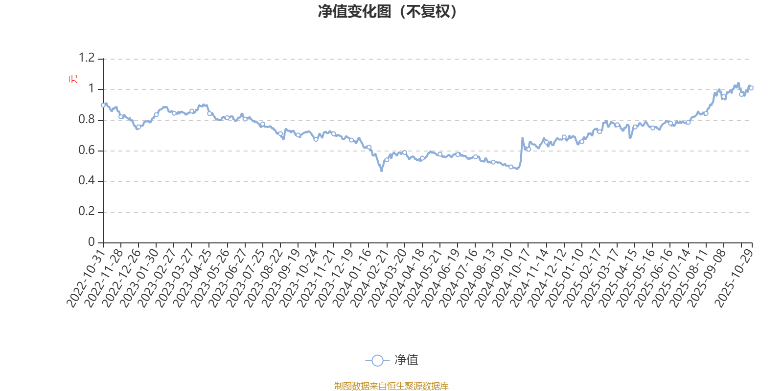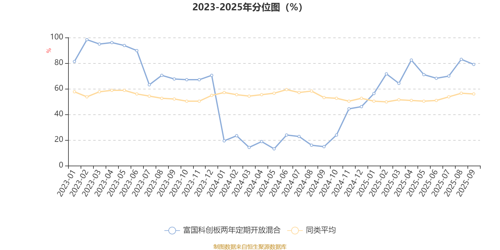 通过所选区间该基金净值增长率分位图,可以观察该基金与同类基金业绩比较情况。图为坐标原点到区间内某时点的净值增长率在同类基金中的分位数。