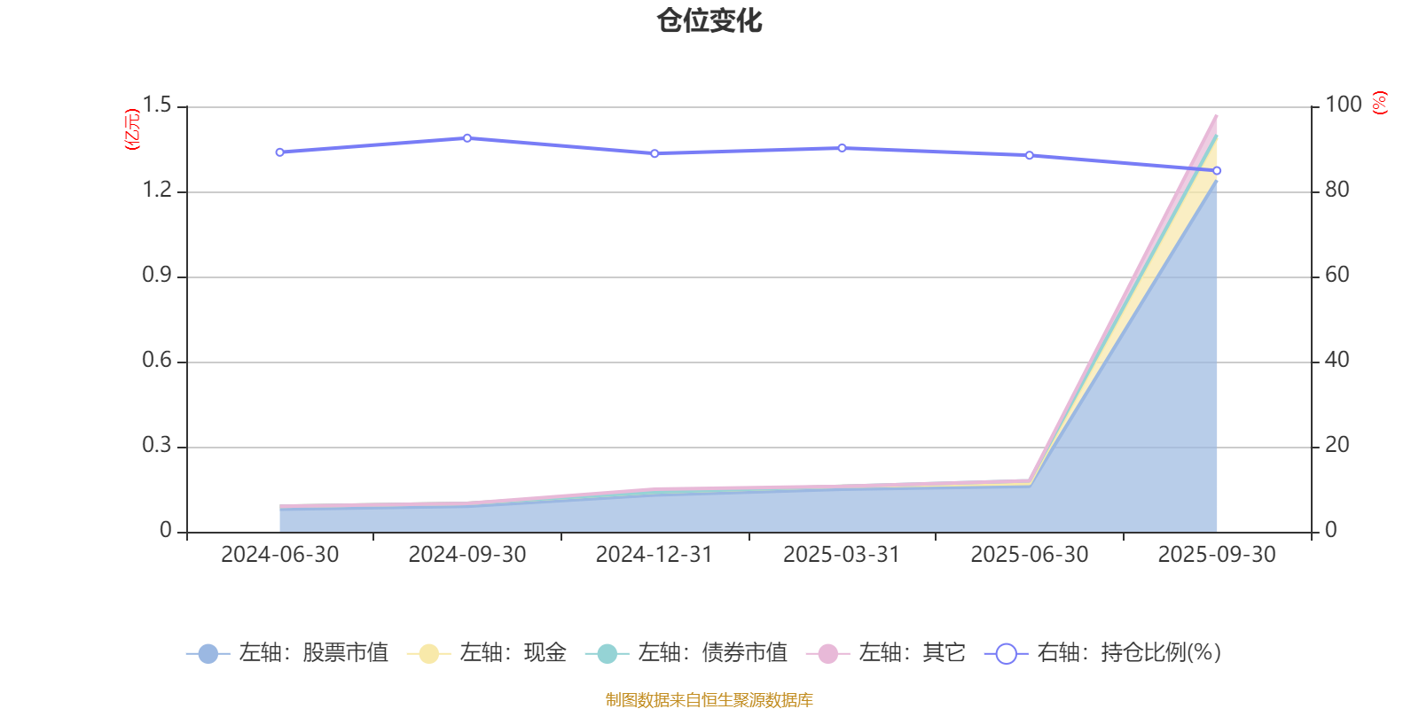 据定期报告数据统计,成立以来平均股票仓位为89.04%,同类平均为86.77%。2024年三季度末基金达到92.54%的最高仓位,2025年三季度末最低,为84.89%。