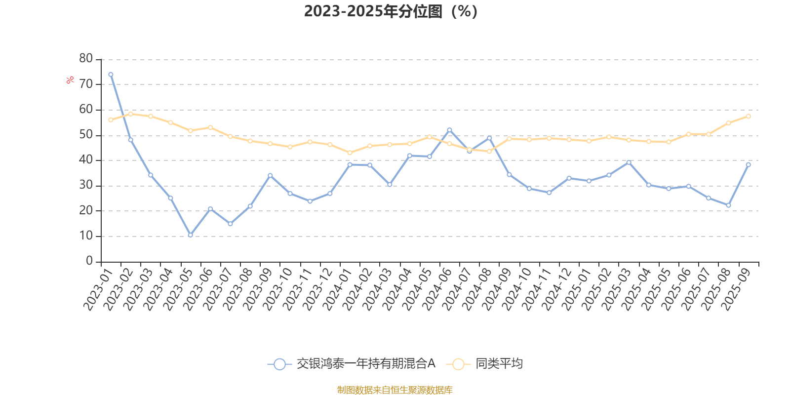 通过所选区间该基金净值增长率分位图,可以观察该基金与同类基金业绩比较情况。图为坐标原点到区间内某时点的净值增长率在同类基金中的分位数。