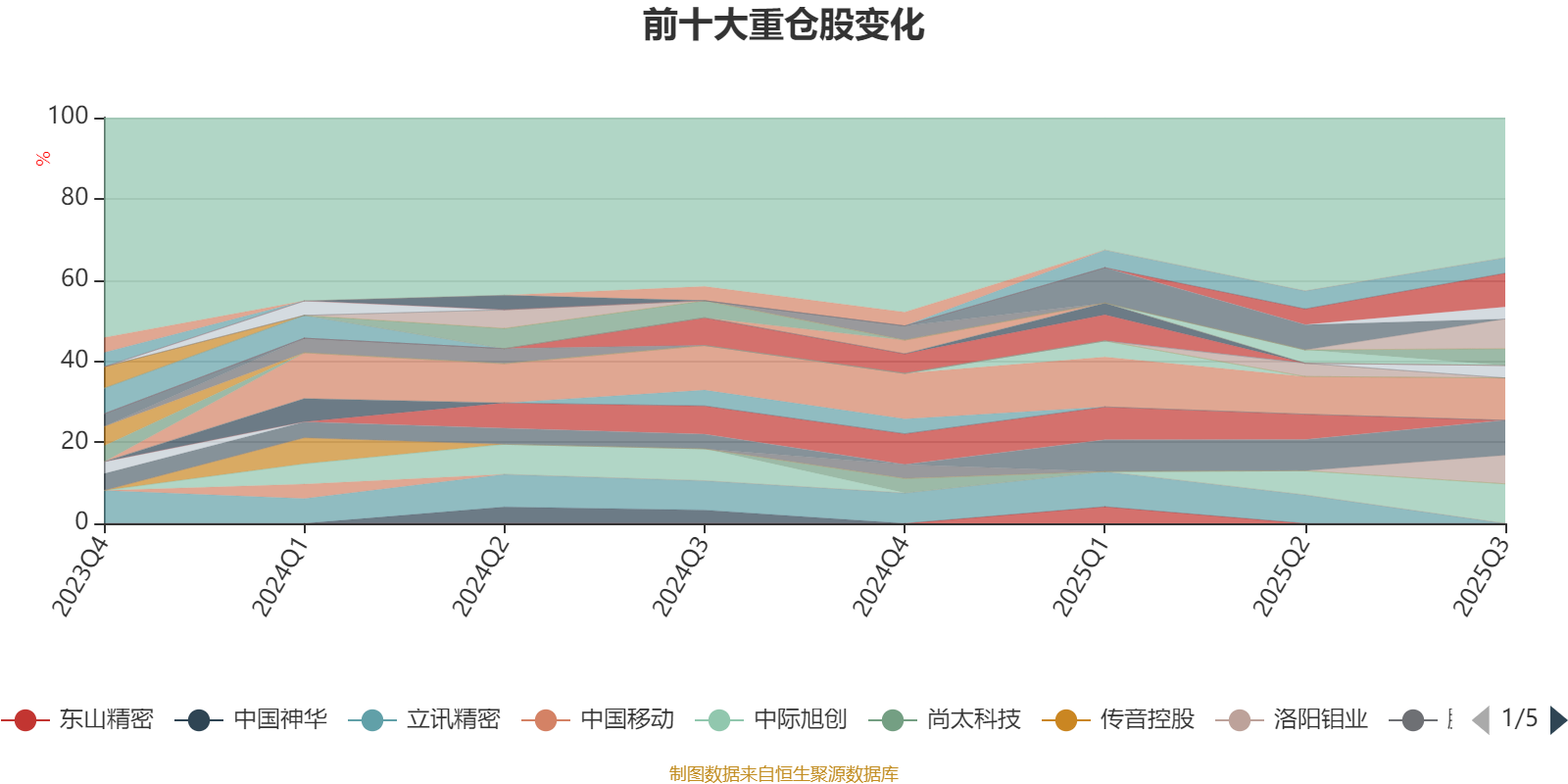 截至2025年三季度末,基金十大重仓股分别是宁德时代、中际旭创、紫金矿业、新易盛、亿纬锂能、洛阳钼业、沪电股份、纽威股份、徐工机械、山东黄金。