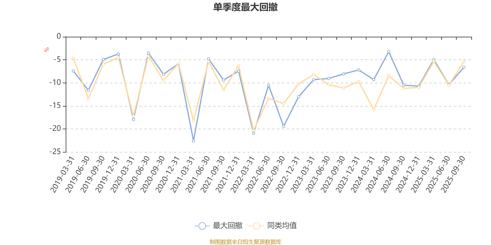 截至10月29日,基金近三年最大回撤为22.83%,同类可比基金排名30/251。单季度最大回撤出现在2021年一季度,为22.58%。