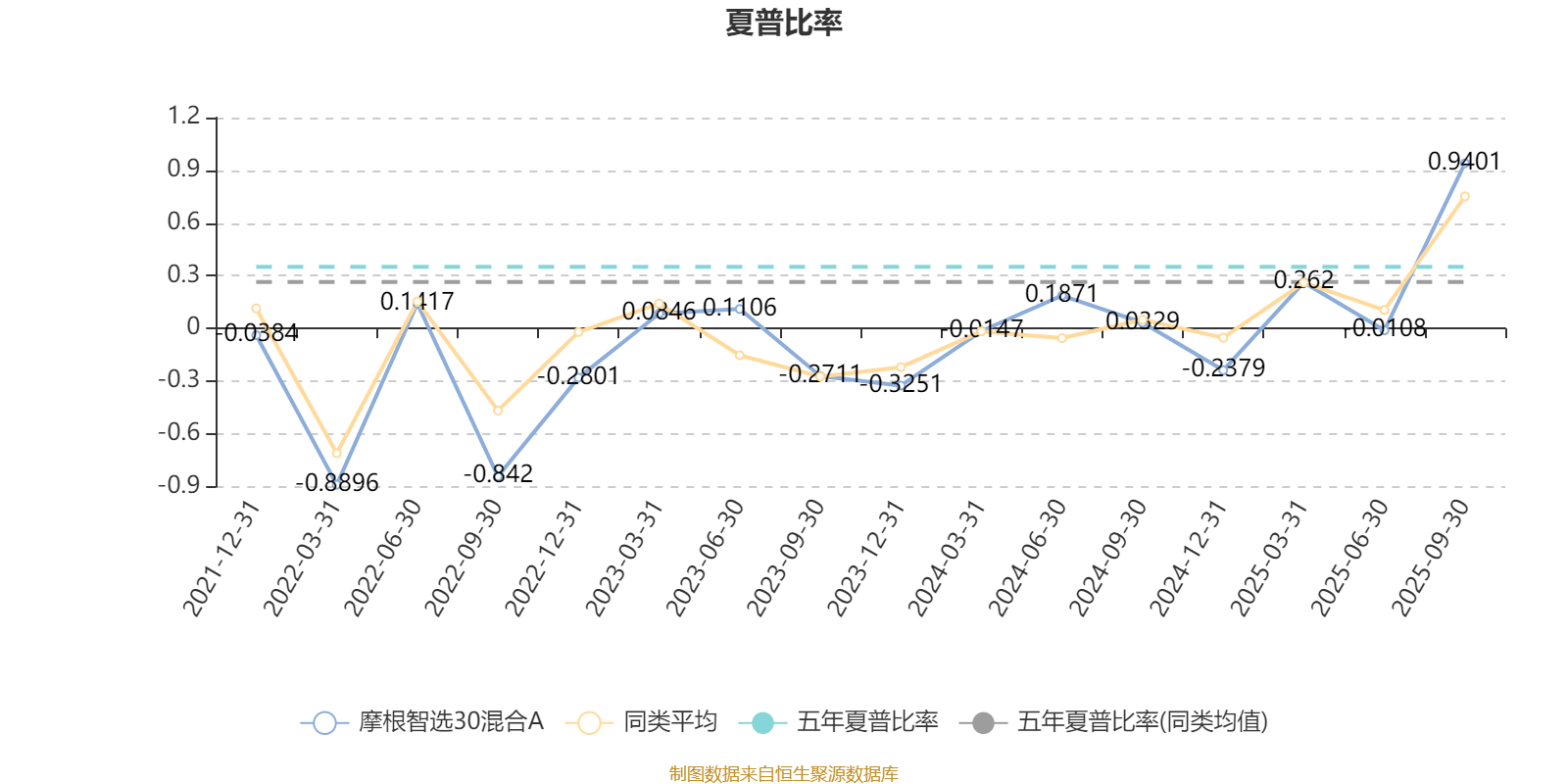 截至9月30日,基金近三年夏普比率为0.8499,位于同类可比基金42/252。
