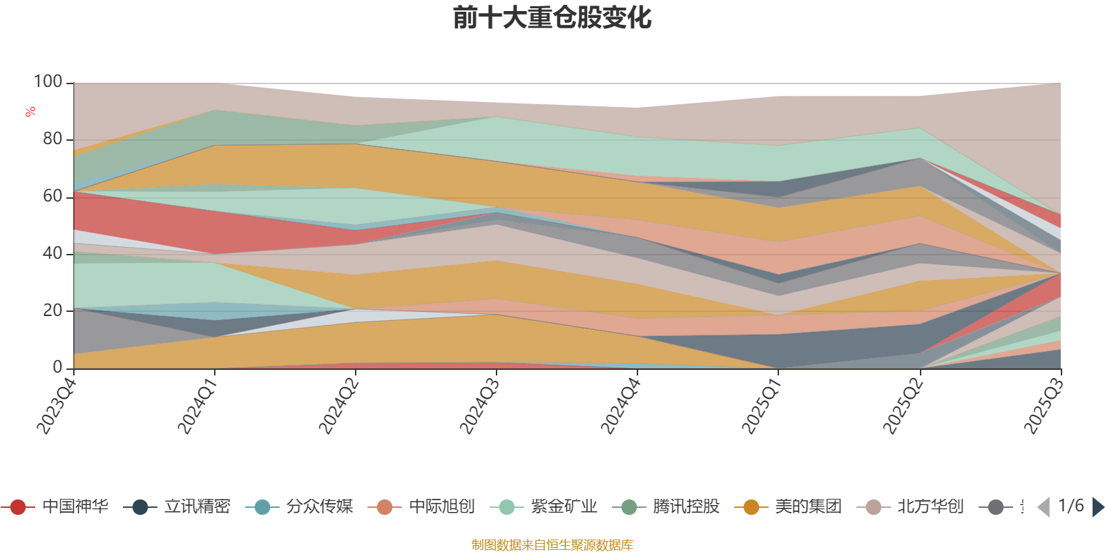 该基金持股集中度较高。截至2025年三季度末,基金十大重仓股分别是宁德时代、歌尔股份、北方华创、立讯精密、腾讯控股、新易盛、阿里巴巴-W、工业富联、紫金矿业、中际旭创。