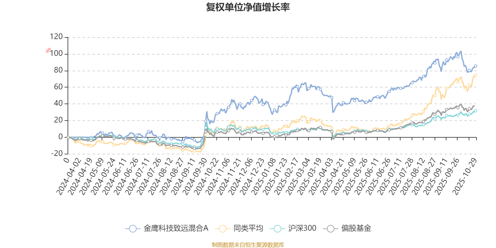 截至10月29日,金鹰科技致远混合A近三个月复权单位净值增长率为10.71%,位于同类可比基金213/229;近半年复权单位净值增长率为31.89%,位于同类可比基金192/229;近一年复权单位净值增长率为40.91%,位于同类可比基金164/213。