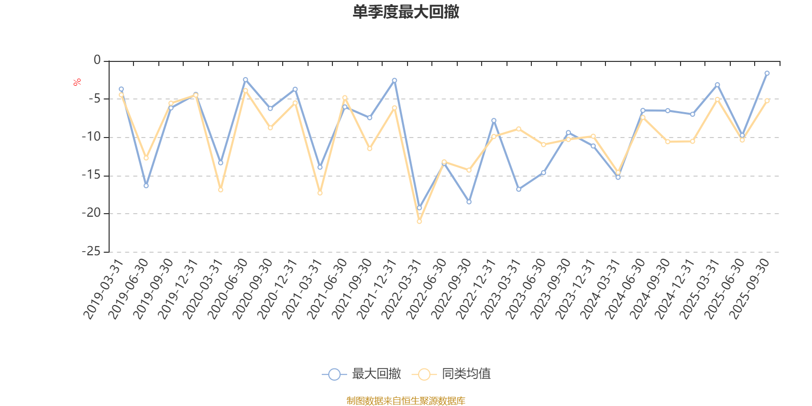 截至10月29日,基金近三年最大回撤为43.59%,同类可比基金排名110/124。单季度最大回撤出现在2022年一季度,为19.22%。