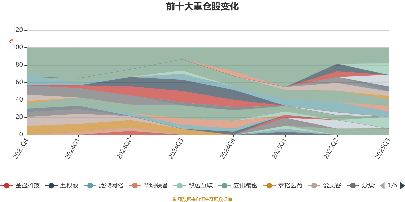 该基金持股集中度较高。截至2025年三季度末,基金十大重仓股分别是浪潮信息、贵州茅台、工业富联、三星医疗、立讯精密、药明康德、澜起科技、滨江集团、恒瑞医药、泸州老窖。