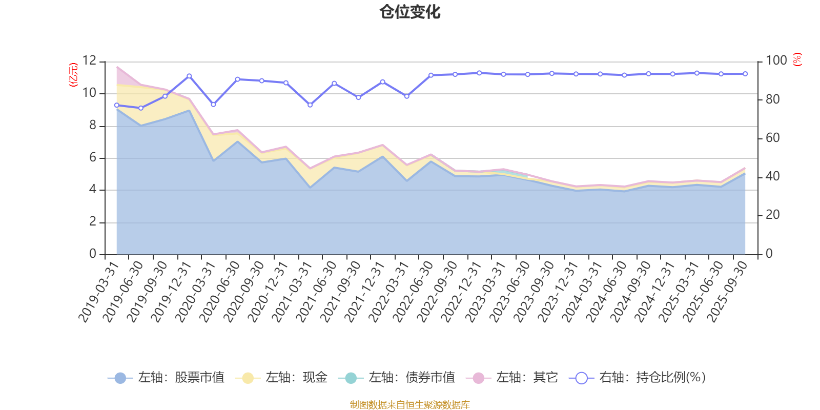 据定期报告数据统计,近三年平均股票仓位为93.58%,同类平均为85.66%。2022年末基金达到94.07%的最高仓位,2019年上半年末最低,为75.88%。