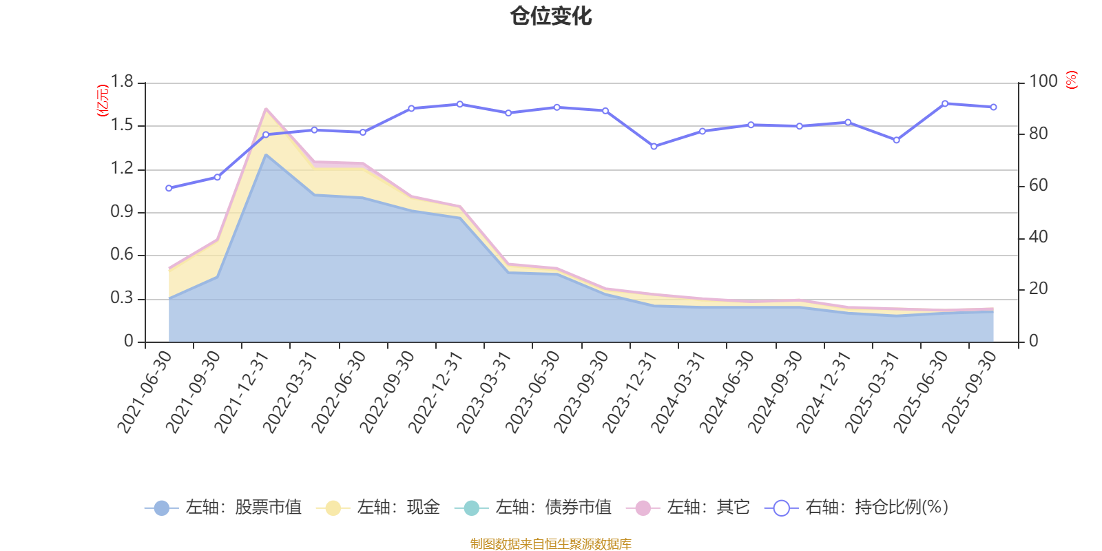 据定期报告数据统计,近三年平均股票仓位为85.7%,同类平均为83.73%。2025年上半年末基金达到91.94%的最高仓位,2021年上半年末最低,为59.3%。