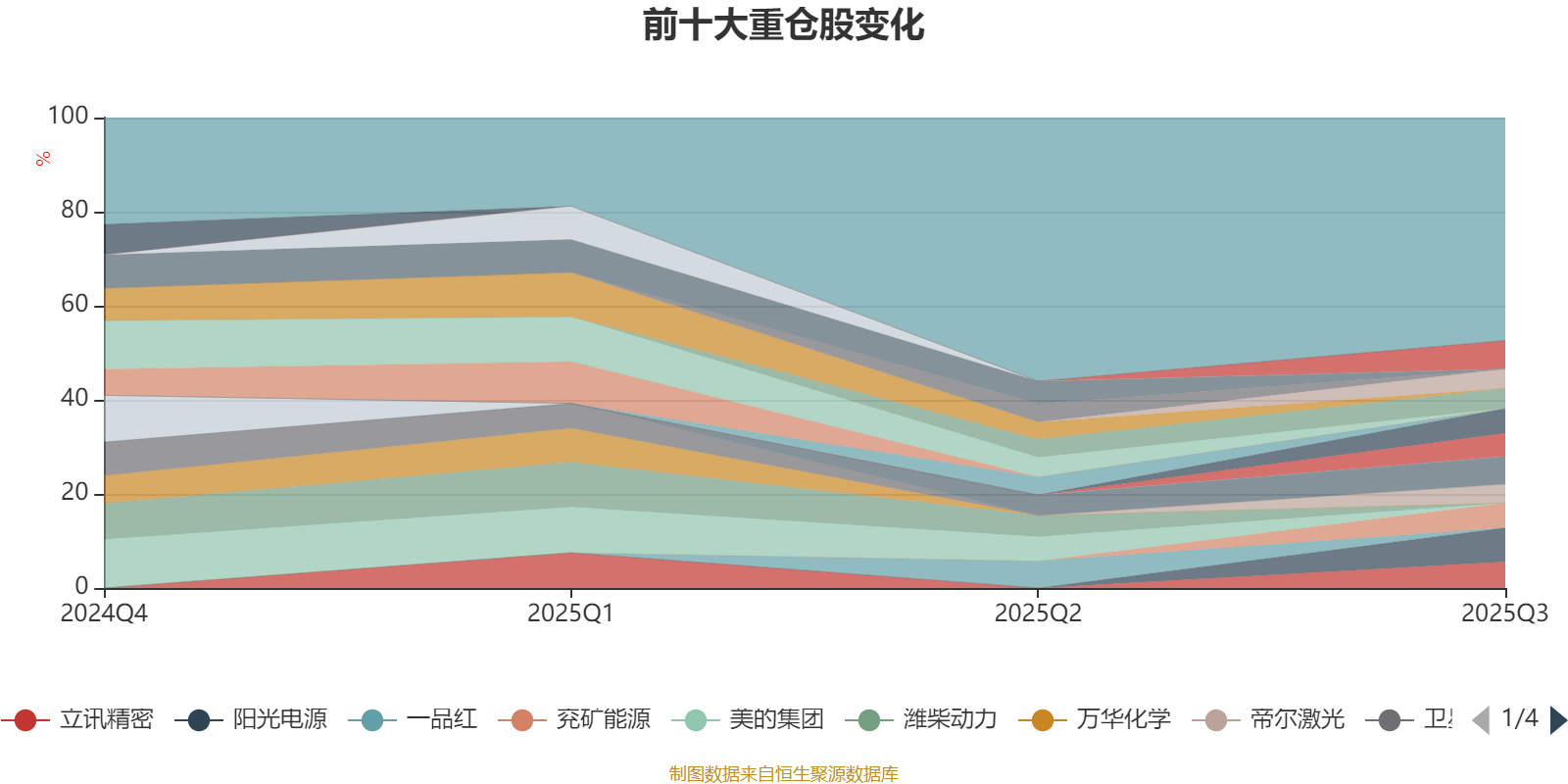 截至2025年三季度末,基金十大重仓股分别是阳光电源、爱旭股份、扬杰科技、立讯精密、兖矿能源、贝达药业、科伦博泰生物-B、恒瑞医药、中国生物制药、帝尔激光。